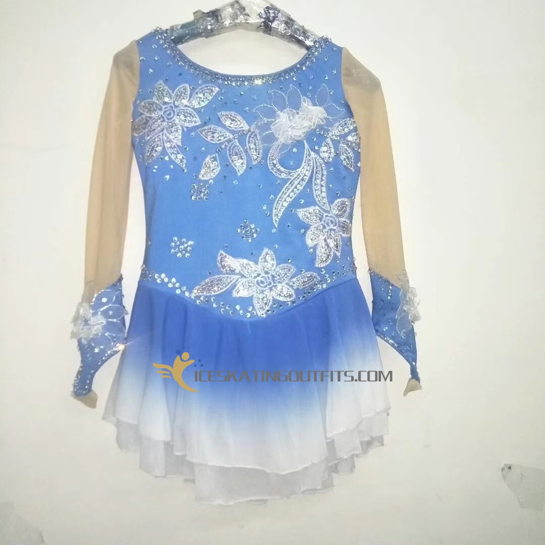 children dark sky blue figure skating dresses B116
